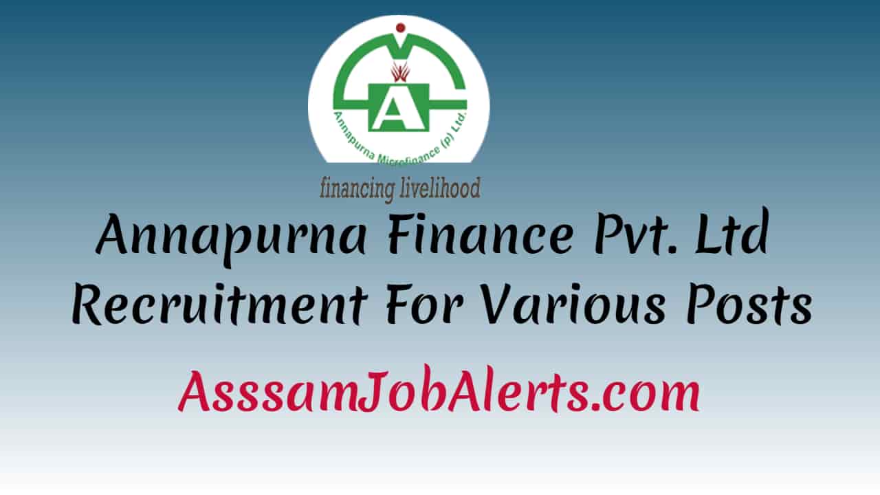 Annapurna Finance Pvt. Ltd Recruitment For Various Posts -Annapurna Finance Pvt. Ltd is a non Banking Finance company Registered with Reserve Bank Of India (RBI) under NBFC-MFI , Looking For Dynamic Individuals (Male & Female) To Take Challenging Jobs At Assam. Young and energetic candidate can join the walk-in-interview for the following posts.