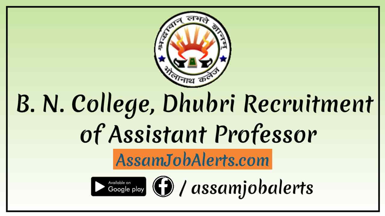 B. N. College, Dhubri Recruitment of Assistant Professor Post Details: