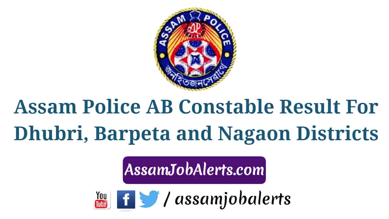 Assam Police AB Constable Result For Dhubri, Barpeta and Nagaon Districts