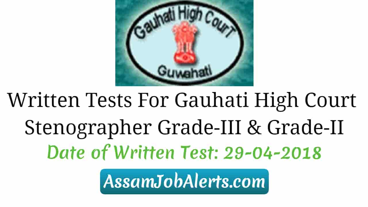 - The Gauhati High Court Stenographer Grade-III & Stenographer Grade-II will be held on 29.04.2018 (Sunday) from 10:30 AM to 12:00 Noon and from 2:30 PM to 4:00 PM respectively.
