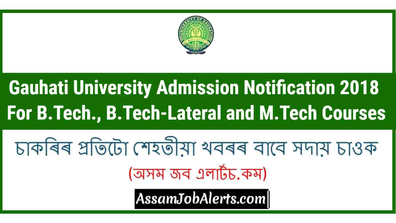 GU Admission Notification 2018 for B.Tech., B.Tech-Lateral, M.Tech. programmes of Gauhati University(GU) Institute of Science and Technology for the session 2018-19 will be started soon.