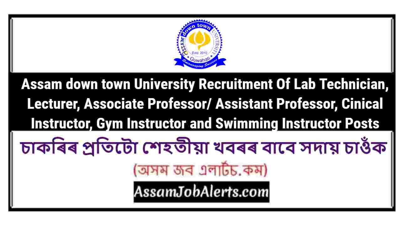 Assam down town University Recruitment 2018 Of Lab Technician, Lecturer, Associate Professor/ Assistant Professor, Cinical Instructor, Gym Instructor and Swimming Instructor Posts