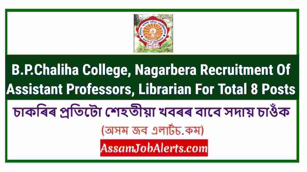 B.P.Chaliha College, Nagarbera Recruitment Of Assistant Professors, Librarian For Total 8 Posts
