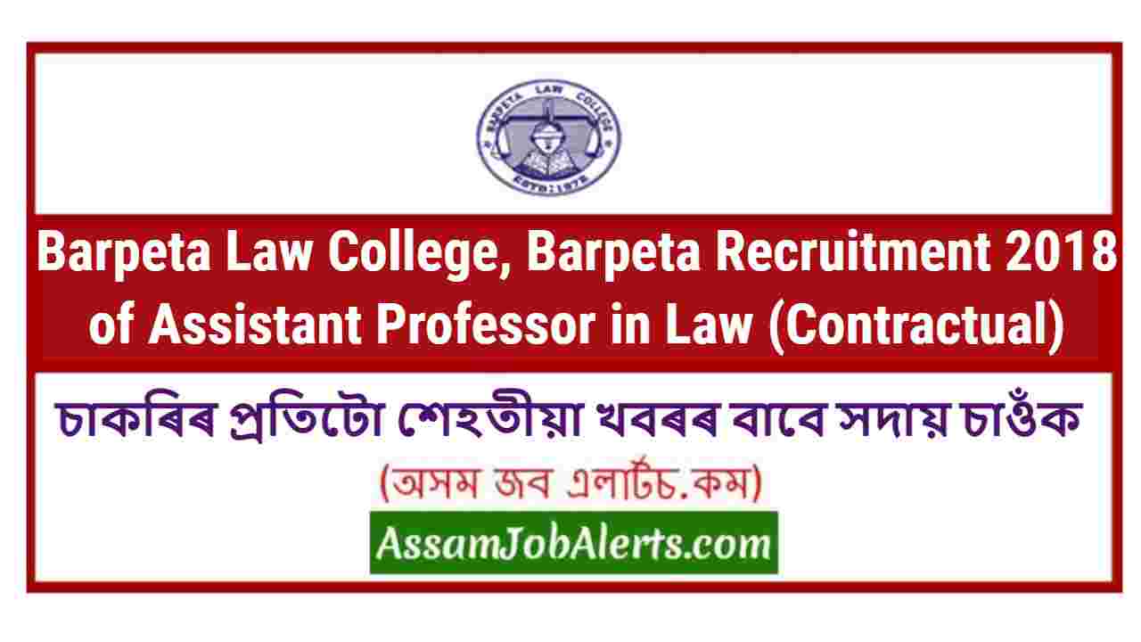 Barpeta Law College, Barpeta Recruitment 2018 of Assistant Professor in Law (Contractual)