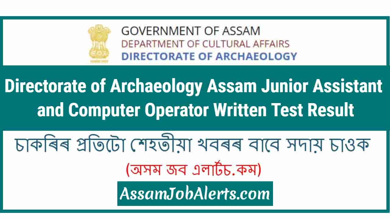 Directorate of Archaeology Assam Junior Assistant and Computer Operator Written Test Result