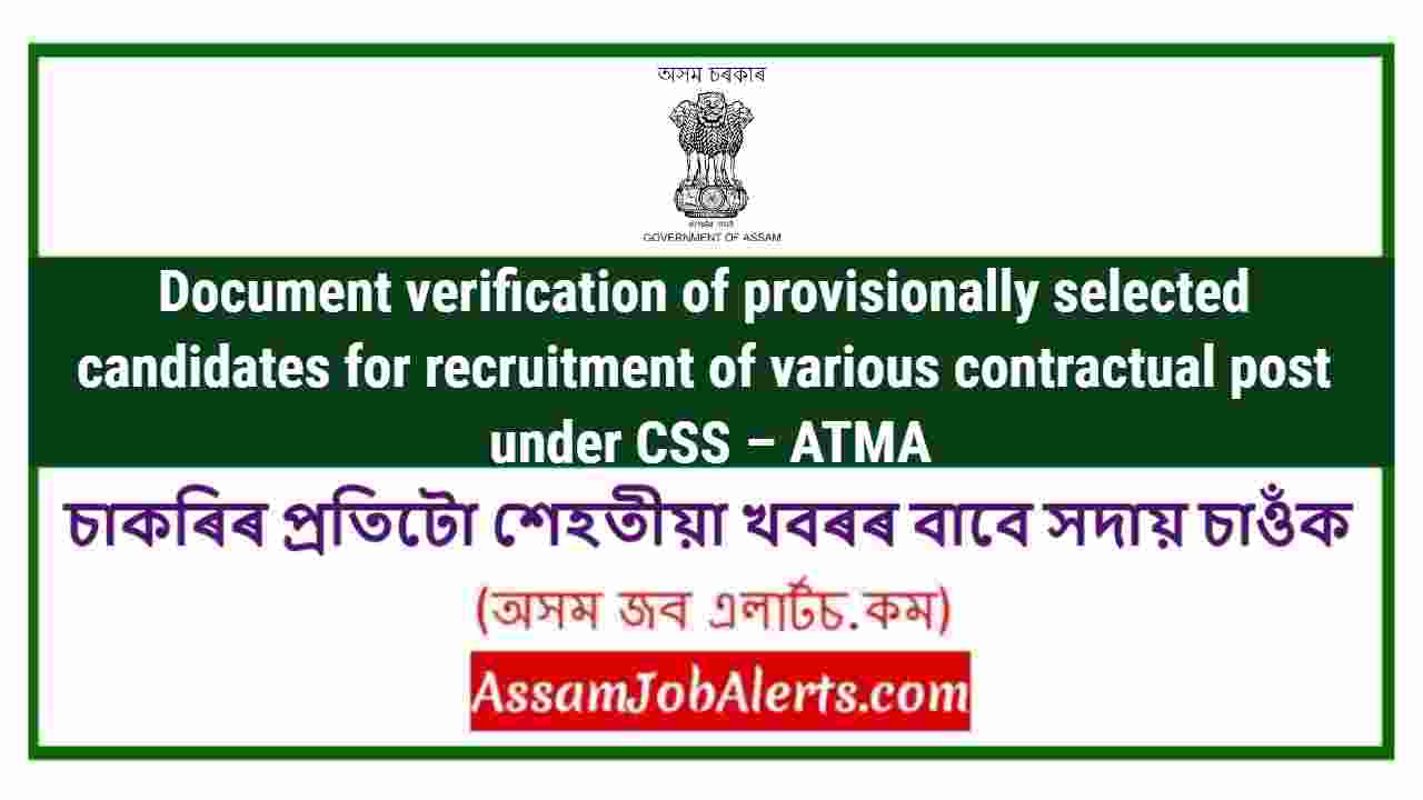Document verification of provisionally selected candidates for recruitment of various contractual post under CSS – ATMA