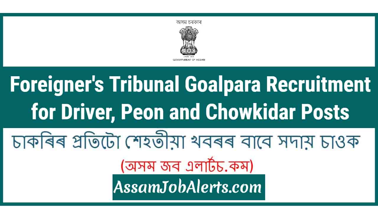 Foreigner’s Tribunal Goalpara Recruitment for Driver, Peon and Chowkidar Posts