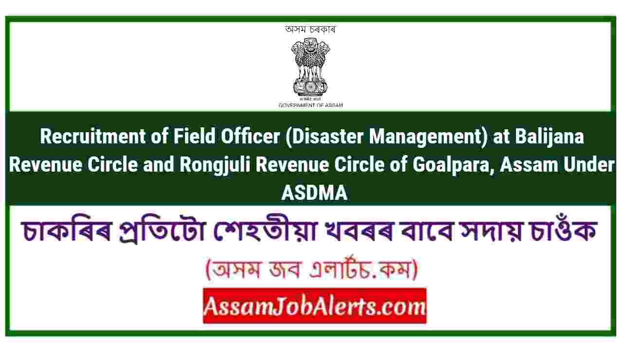 Recruitment of Field Officer (Disaster Management) at Balijana Revenue Circle and Rongjuli Revenue Circle of Goalpara, Assam Under ASDMA