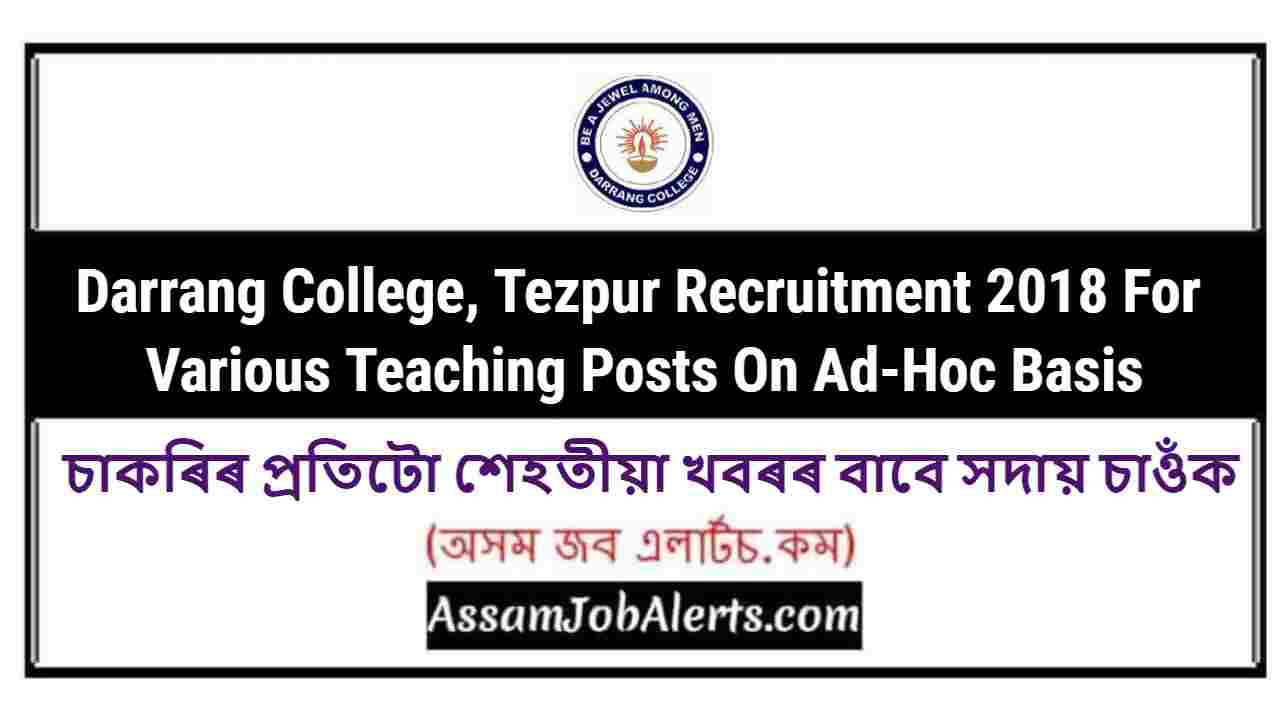 Darrang College, Tezpur Recruitment 2018 For Various Posts On Ad-Hoc Basis