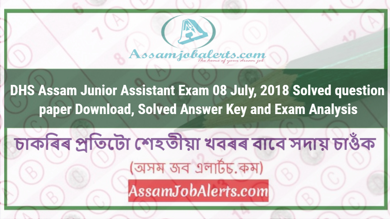 DHS Assam Junior Assistant Exam 08 July, 2018 Solved question paper Download, Solved Answer Key and Exam Analysis