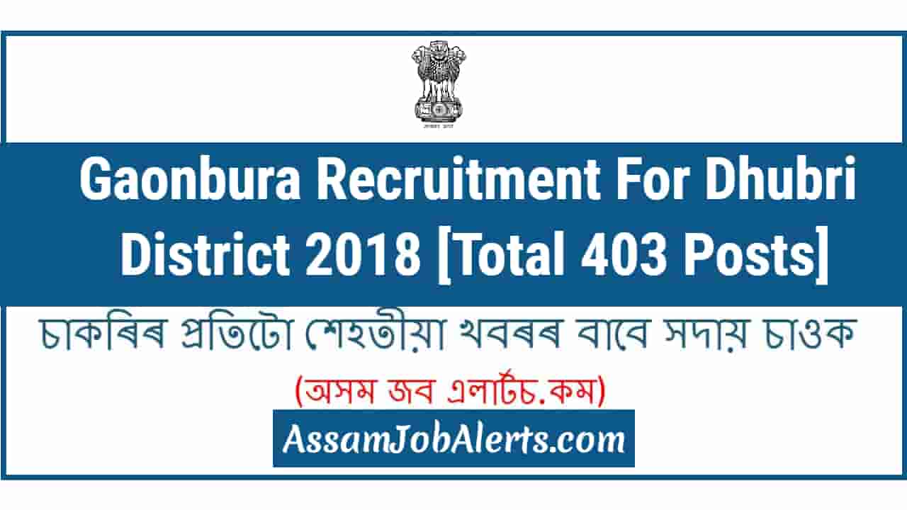 Gaonbura Recruitment For Dhubri District 2018 Important Points: