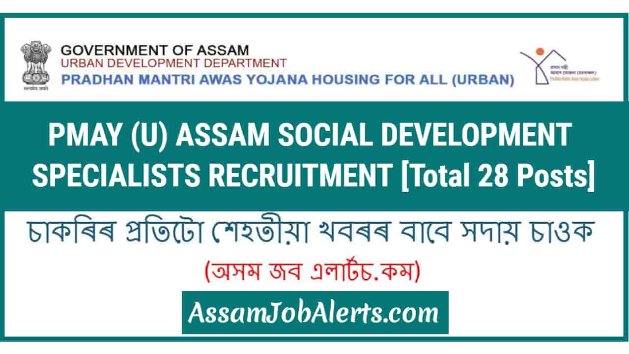 PMAY (U) Assam Social Development Specialists Recruitment -Online applications are invited for Interview or/and Written Test for 28 posts of Social Development Specialist in City Level Technical Cell of Pradhan Mantri Awas Yojana – Urban for engagement on contractual basis. Candidates have to apply online in PMAY-U, Assam at website: http://pmayassam.in