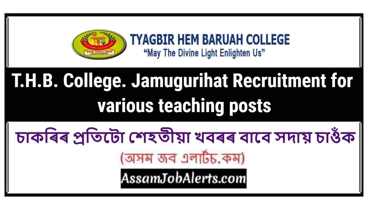 T.H.B. College. Jamugurihat Recruitment for various posts