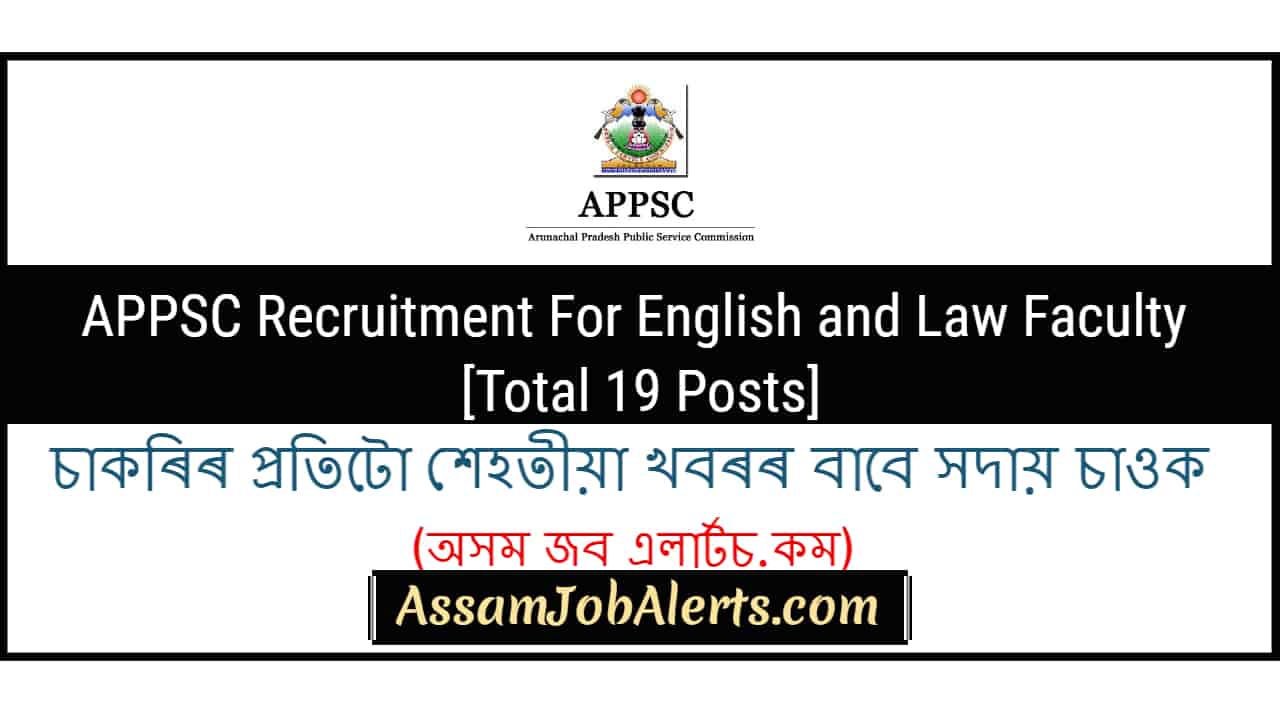 APPSC Recruitment For English and Law Faculty -Applications in prescribed form are invited from citizens of India for filling up of 19 (nineteen) posts of Assistant Professor for the Govt, Law College of Arunachal Pradesh in the pay band-3 of Rs. 15600-39100 with AGP of Rs. 6000/- per month plus other allowances as admissible to Arunachal Pradesh Govt, Employees from time to time. Vacancy position is subject to variation.