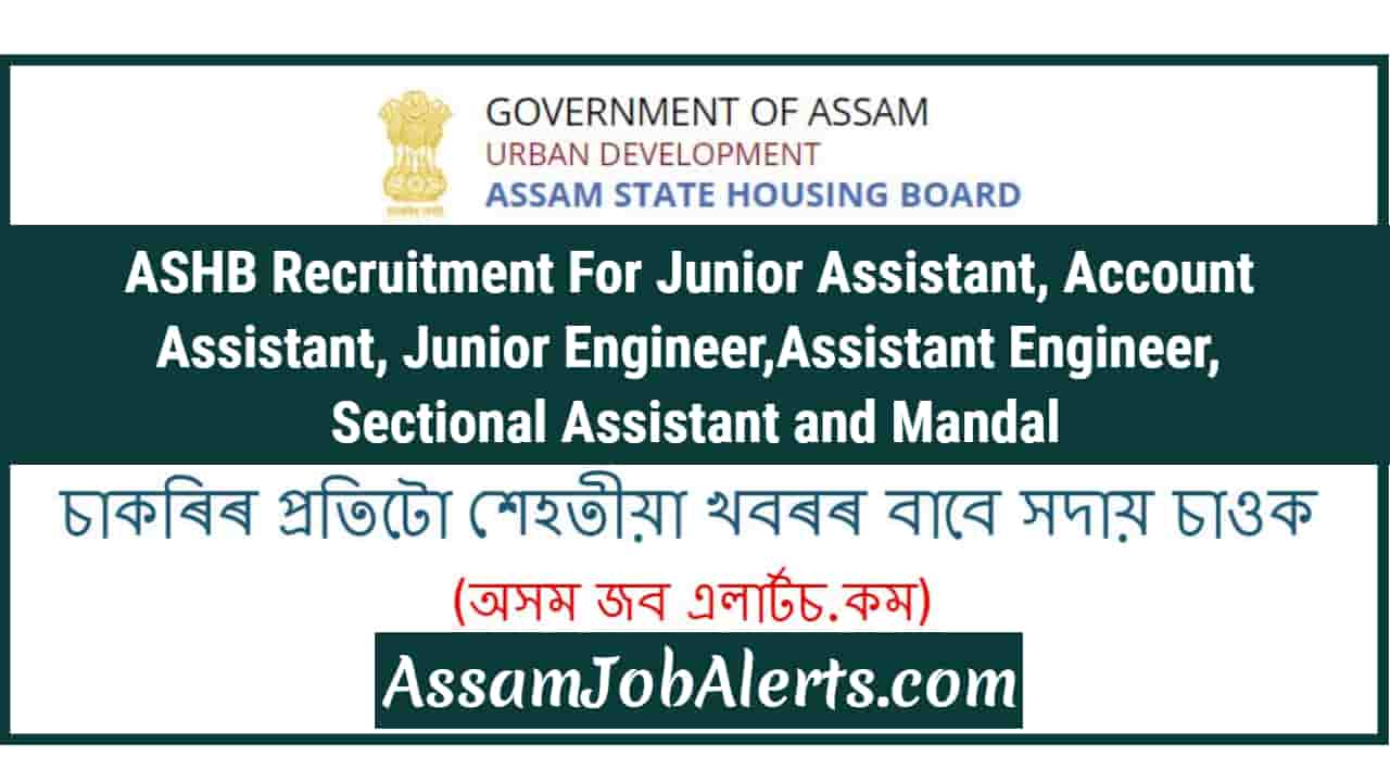 ASHB Recruitment For Junior Assistant, Account Assistant – Applications are invited form intending eligible candidates by Assam State Housing Board (ASHB) for the posts of Junior Assistant (H.Q), Junior Assistant (District), Account Assistant, Junior Engineer (Civil), Junior Engineer (Electrical), Assistant Engineer (Civil), Sectional Assistant & Mandal posts.