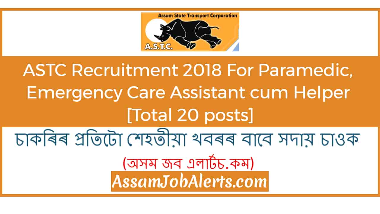 ASTC Recruitment 2018 For Paramedic, Emergency Care Assistant cum Helper -Assam State Transport Corporation(ASTC) has recently published a Recruitment notification regarding recruitment for 20 ASTC Experienced Paramedic and Emergency Care Assistant cum Helper.