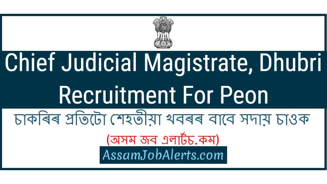 Chief Judicial Magistrate, Dhubri Recruitment For Peon – Application in Standard Form are invited from the citizens of India as defined under Articles 5 & 6 of the Constitution of India. having registration of Employment Exchange in Assam for filling up the posts of Peon under the establishment of the Chief Judicial Magistrate, Dhubri.