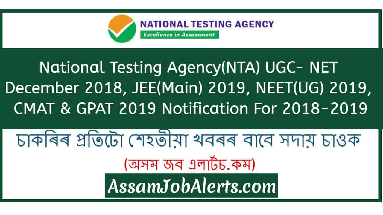 National Testing Agency(NTA) UGC- NET, JEE(Main), NEET(UG), CMAT & GPAT Notification For 2018-2019