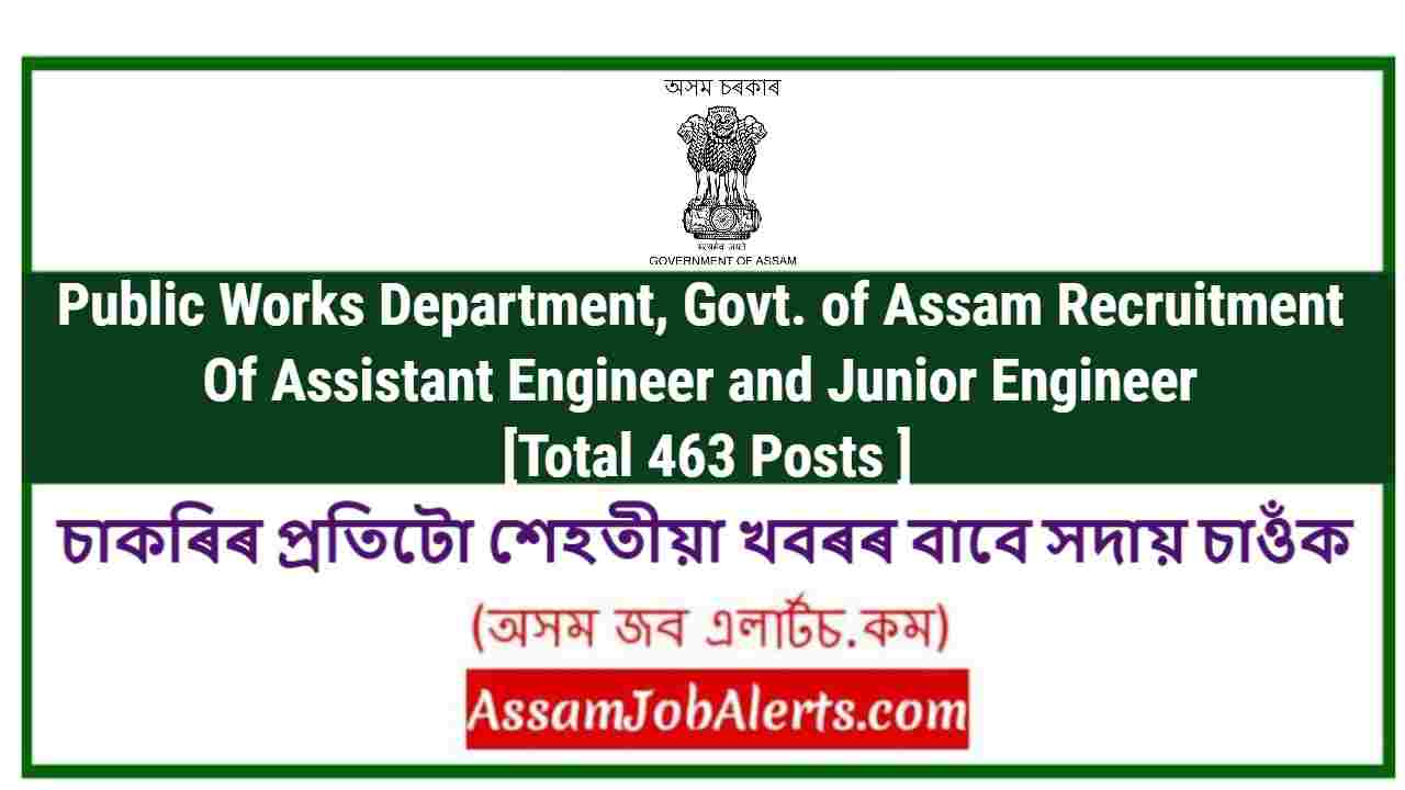 Public Works Department, Govt. of Assam Recruitment Of Assistant Engineer and Junior Engineer [Total 463 Posts ]