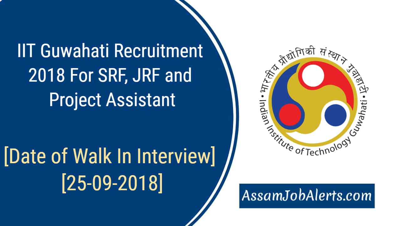 IIT Guwahati Recruitment 2018 For SRF, JRF and Project Assistant [Walk In Interview]