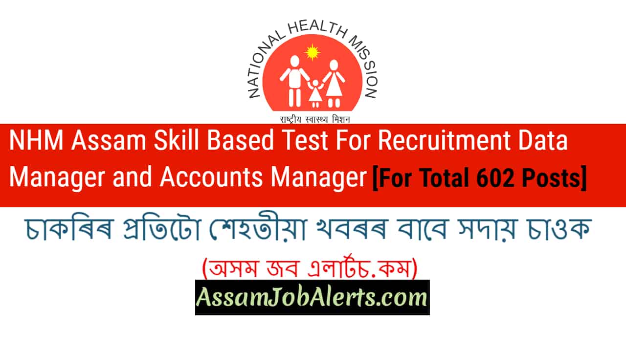 NHM Assam Skill Based Test For Recruitment Data Manager and Accounts Manager [For Total 602 Posts]