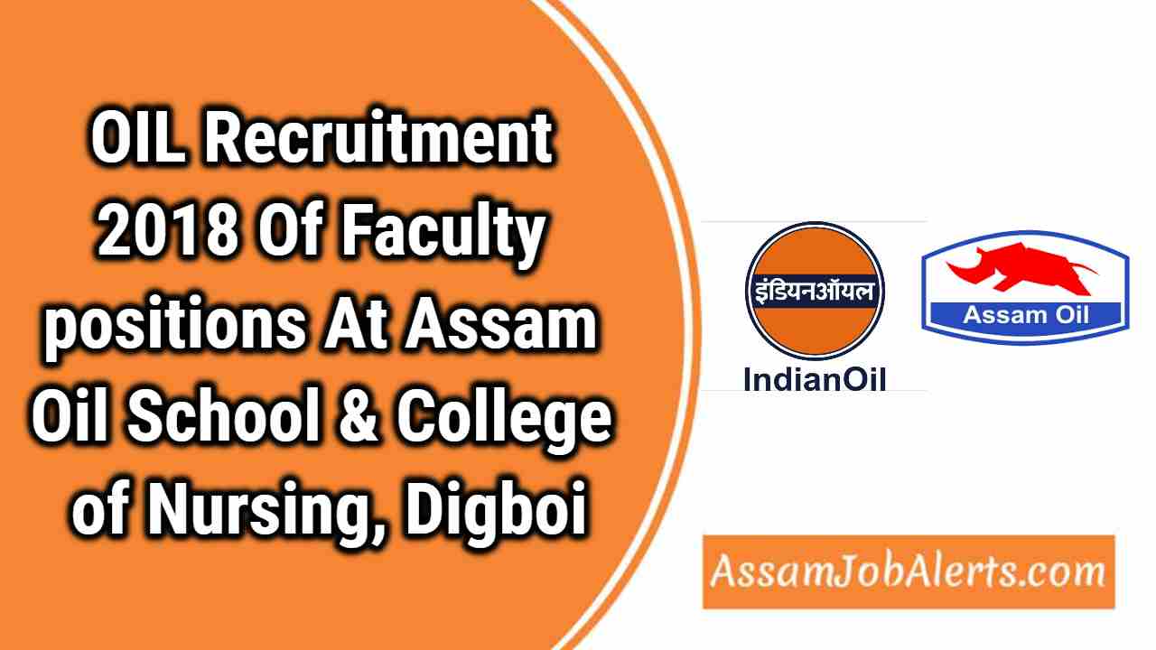 OIL Recruitment 2018 Of Faculty positions At Assam Oil School & College of Nursing, Digboi