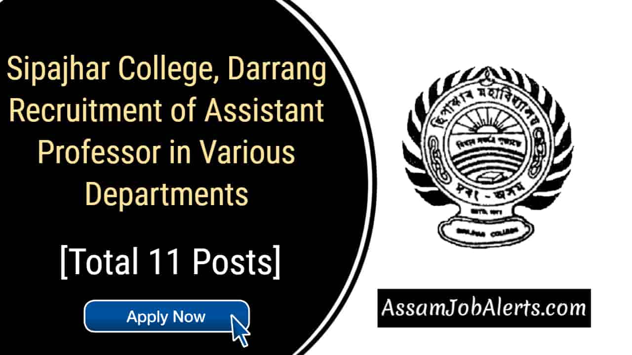 Sipajhar College, Darrang Recruitment of Assistant Professor – Applications are invited from the interested candidates for the post of Assistant Professor in Botany, Chemistry, English, Mathematics, Physics and Zoology subjects at Sipajhar College, Darrang.