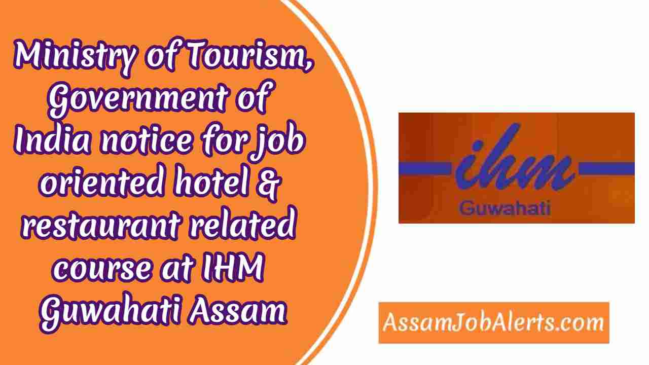 Ministry of Tourism, Government of India notice for job oriented hotel & restaurant related course at IHM Guwahati Assam