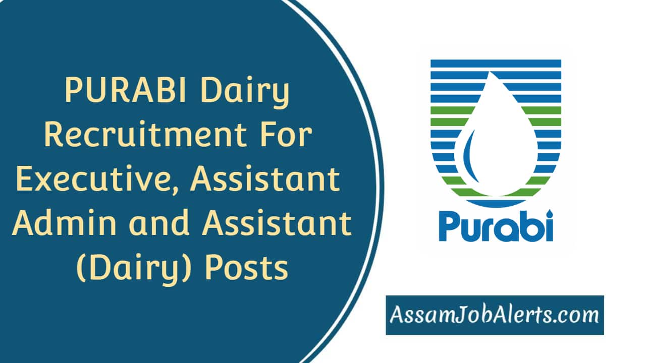 PURABI Dairy Recruitment For Executive, Assistant Admin and Assistant (Dairy) Posts – PURABI is the brand name for milk and dairy products manufactured by West Assam Milk Producers Co-operative Union Ltd. (WAMUL). It is the apex cooperative body in Assam and one of the largest and most active dairy units in entire North East India WAMUL that has created a symbiotic relationship between milk producers and the consumers is seeking to hire bright dynamic professionals to strengthen & expand its operation WAMUL requires services of professionals for the following positions. For More Job Updates Please visit or search for AssamJobAlerts.com