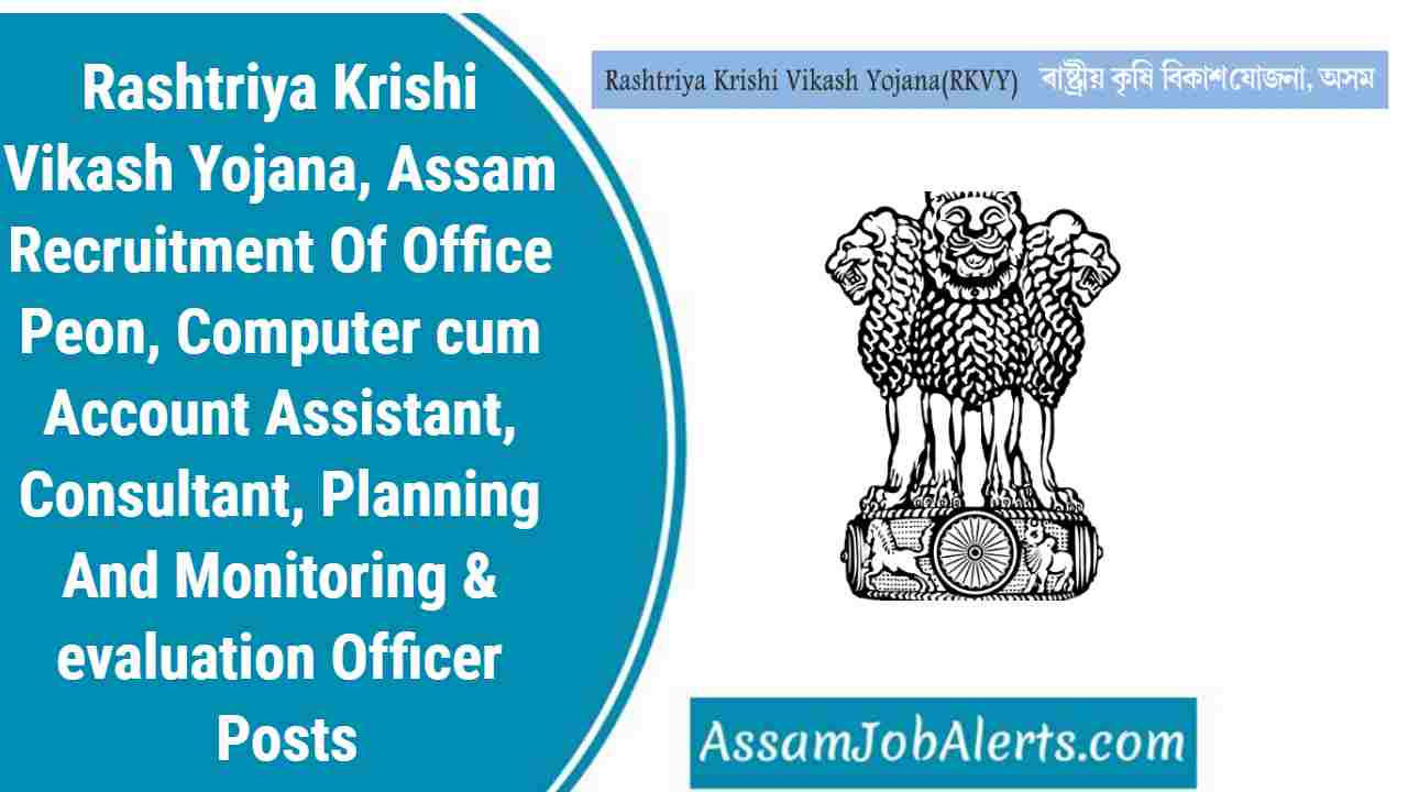 Rashtriya Krishi Vikash Yojana, Assam Recruitment Of Office Peon, Computer cum Account Assistant, Consultant, Planning And Monitoring & evaluation Officer Posts
