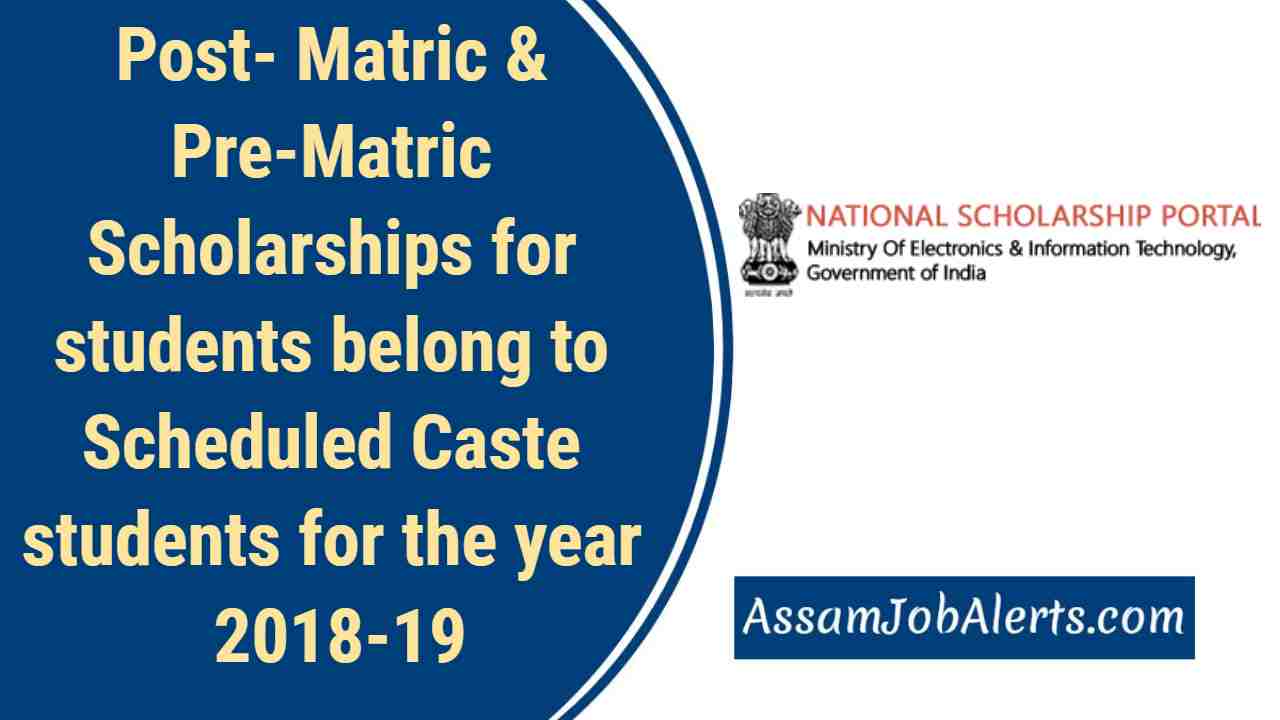 It is for information to all concerned that applications for Post- Matric& Pre -Matric Scholarships for students belong to Scheduled Caste students are invited for the year 2018-19 through National Scholarship Portal (NSP) www.scholarships.gov.in as per decision taken by the Government of Assam. Proposal will be entertained through on line portal only for students studying Govt/Govt-aided/Gov recogritzed/Madhyamik/middle/Primaty School/university/Higher secondary/colleges including medical college,Technical colleges etc.