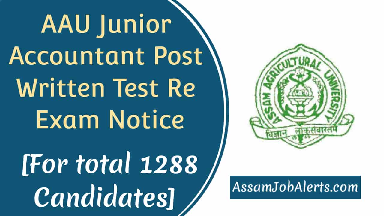 AAU Junior Accountant Post Written Test Re Exam Notice – Assam Agriculture University, Jorhat-13 had cancelled the written exam for the post of Junior Accountant which was held on the month of July 2018. It is for general information of all concerned that due to some unavoidable reasons, the written test held on 29.07.2018 for the post of Junior Accountant as per this office advertisement No.Compt-3/2017 dtd.08.04.2017 is hereby cancelled and re-examination planned as per No. Date, Time and Venue mentioned below.