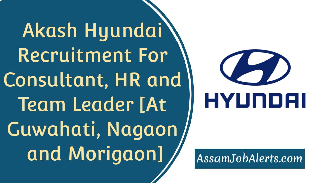 Akash Hyundai Recruitment – Hyundai is one of the top car manufacturer company in the world, Akash Hyundai is a dealer located in various districts of Assam. The Akash Hyundai is going to recruit young energetic professionals for the Sales Consultant, HR/Trainer, Team Leader, Sales Consultant and Evaluator posts vacant in Nagaon, Lanka, Morigaon and Guwahati.