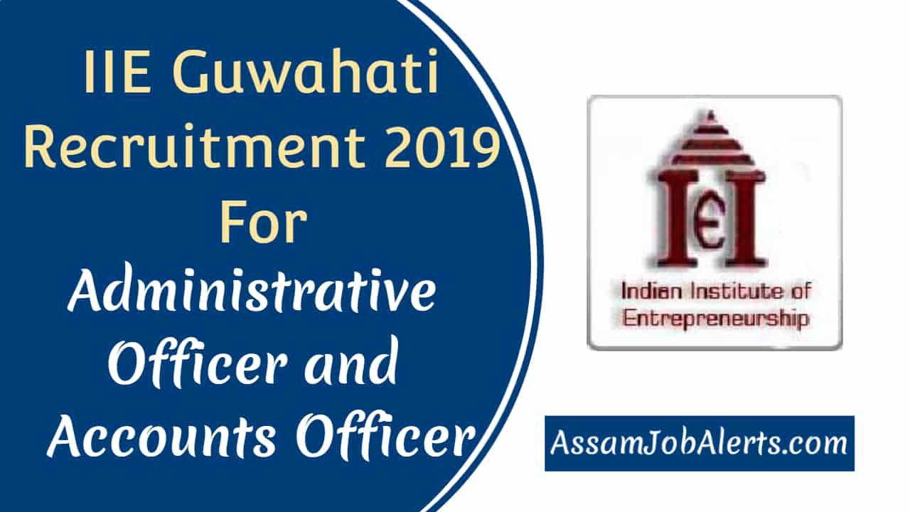IIE Guwahati Recruitment 2019 For Administrative Officer and Accounts Officer – The Indian Institute of Entrepreneurship (IIE) an autonomous organization under the Ministry of Skill Development and Entrepreneurship, Govt. of India with its Headquarter at Guwahati and engaged in training. research and consultancy activities in the fields of Skill Development and entrepreneurship is looking fora highly proficient person to fill in the post of Administrative Officer & Accounts Officer. For More Job Updates Please visit or search for Assam Job Alerts.com