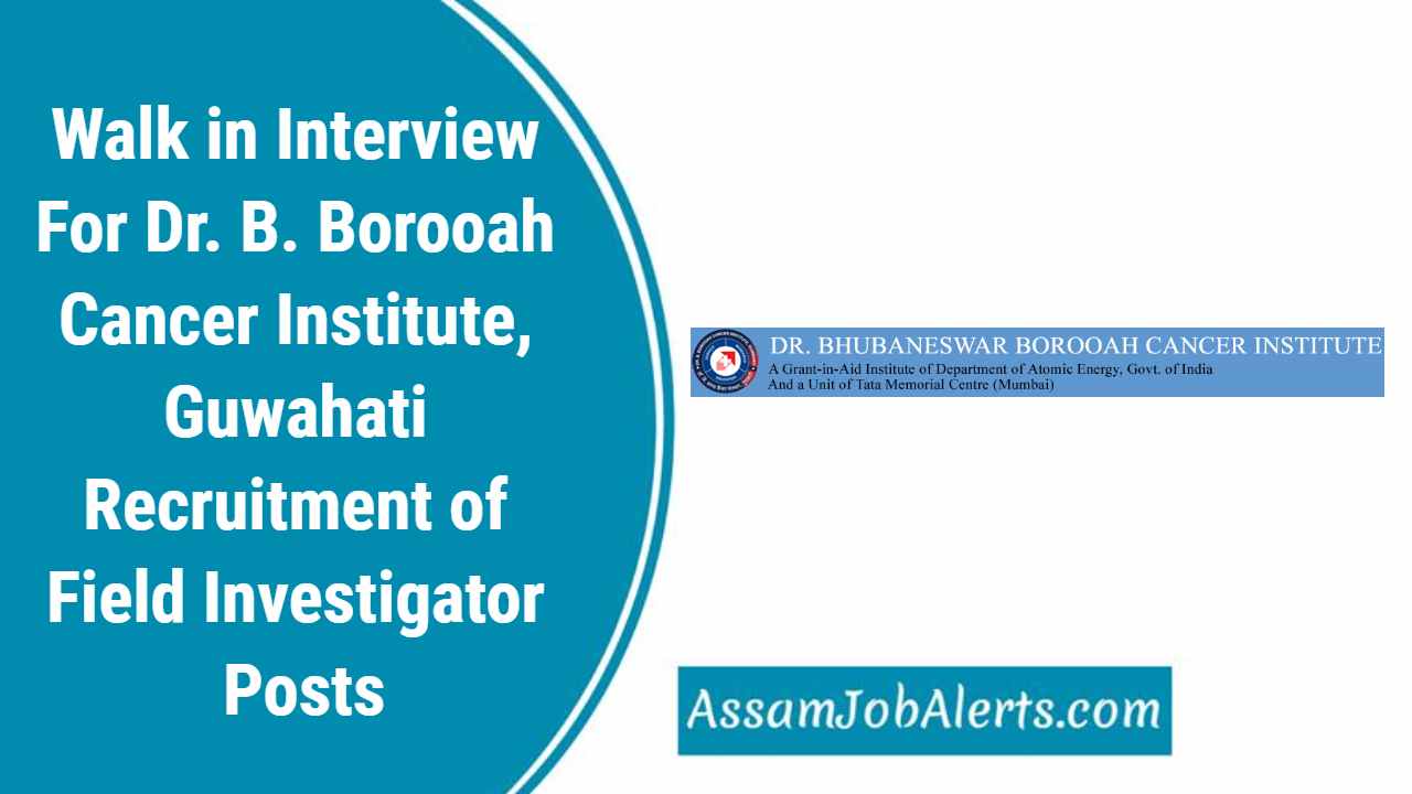 Walk in Interview For Dr. B. Borooah Cancer Institute, Guwahati Recruitment of Field Investigator Posts
