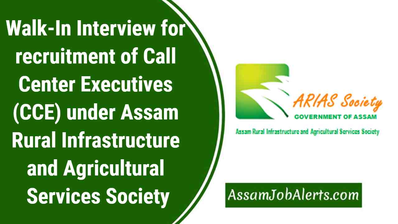 Walk-In Interview for recruitment of Call Center Executives (CCE) under Assam Rural Infrastructure and Agricultural Services Society: The ARIAS Society invites applications for a Walk-In Interview for recruitment of 10(ten) nos. Call Center Executives (CCE) on contract basis for the Call Center proposed to be established under the World Bank financed ACCSDP. The selected candidates will be placed at the Call Center to be established in a Government owned building in Guwahati under the Information Technology Department, Government of Assam. The minimum required qualification & experience in brief, age and Indicative remuneration range for the position are furnished below. However, the same shall be as per the detailed Terms of Reference (TOR) provided on the website of ARIAS Society at http://www.arias.in/ career.html).