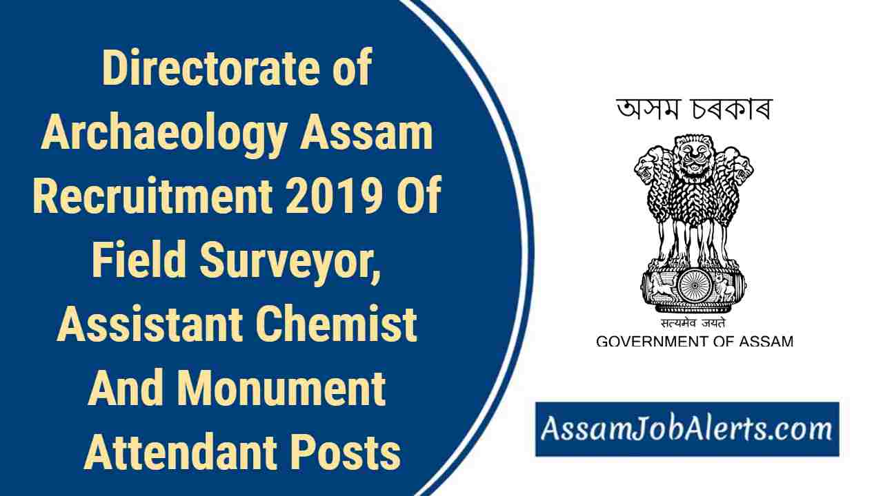 Directorate of Archaeology Assam Recruitment 2019 Of Field Surveyor, Assistant Chemist And Monument Attendant Posts