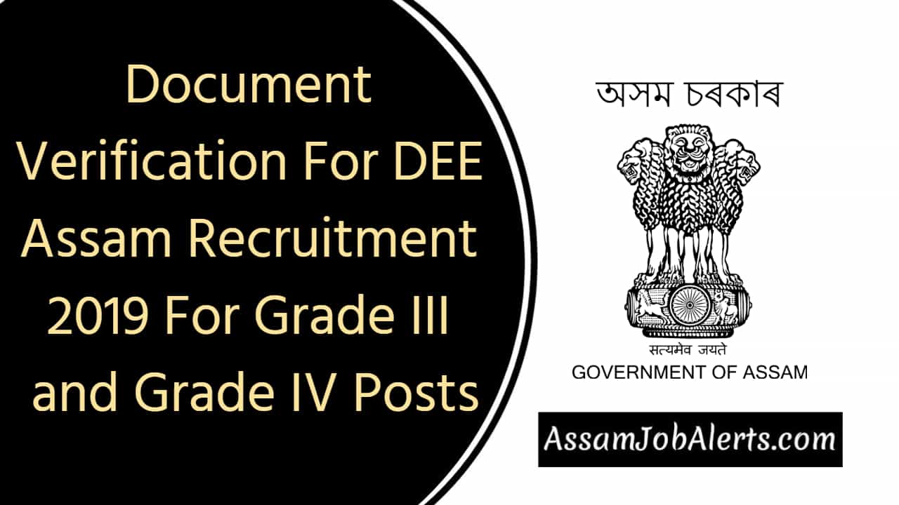 Document Verification For DEE Assam Recruitment 2019 For Grade III and Grade IV Posts