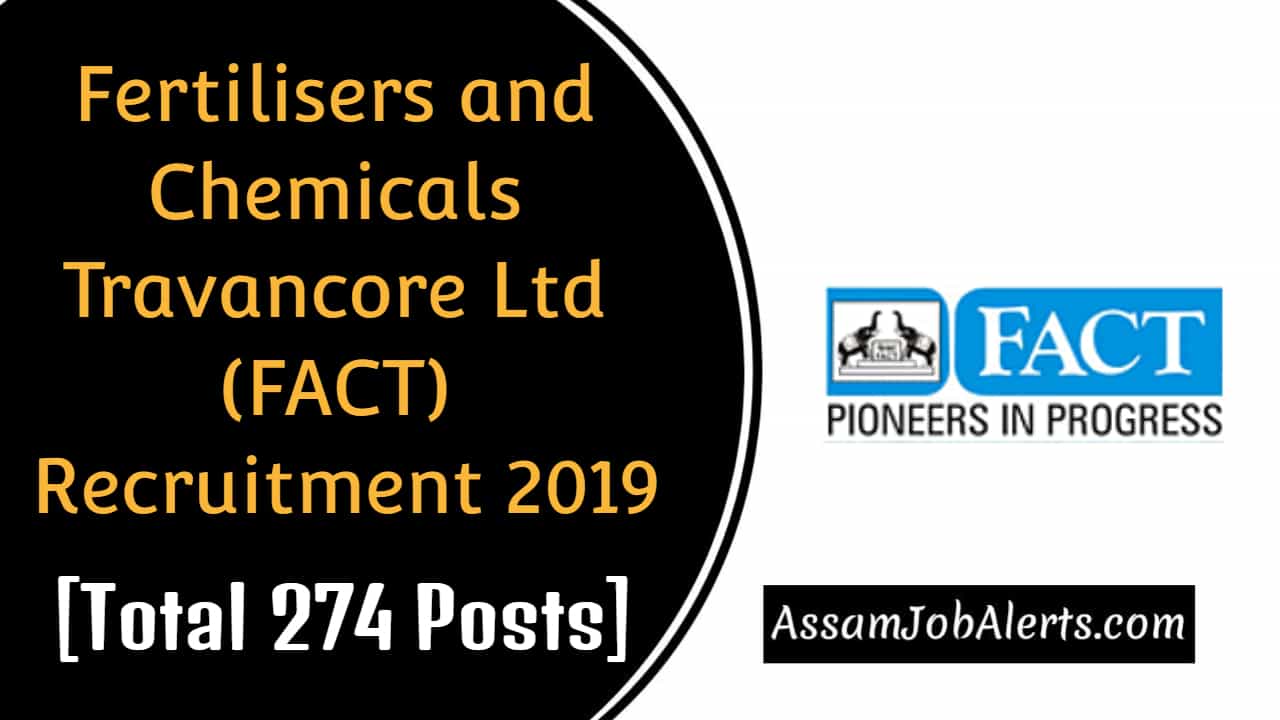 Fertilisers And Chemicals Travancore Ltd (FACT) Recruitment 2019 – THE FERTILISERS AND CHEMICALS TRAVANCORE LTD, a multi-divisional Central PSE ,and a pioneer in the manufacture of Fertilisers and Chemicals, with activities spread over Manufacturing, Engineering Design and Consultancy, Fabrication etc., invites applications from eligible candidates for appointment against Posts as listed below.
