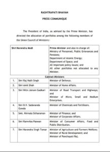 List of the Central Minister of India 2019 and Allotted Portfolios List of the Central Minister of India 2019 and Allotted Portfolios List of the Central Minister 2019 and their Allotted Portfolios