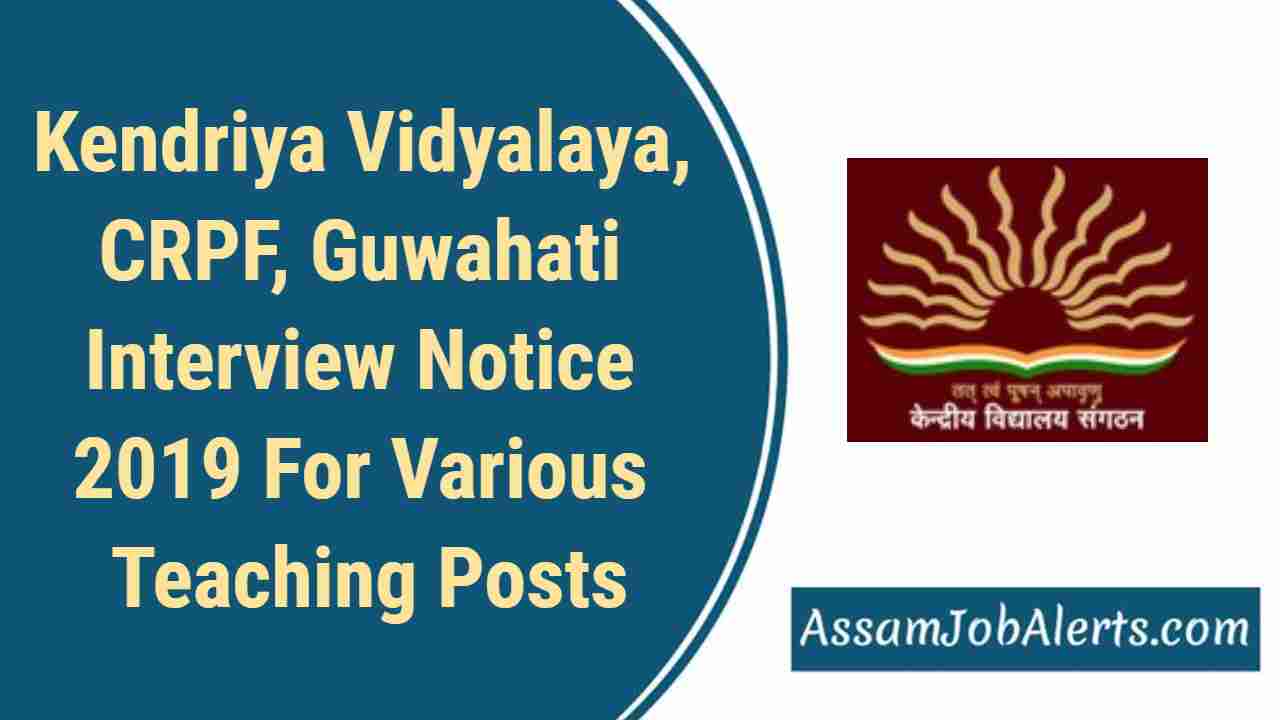 • Kendriya Vidyalaya, CRPF, Guwahati Interview Notice 2019 For Various Teaching Posts Kendriya Vidyalaya, CRPF, Guwahati Interview Notice 2019 For Various Teaching Posts