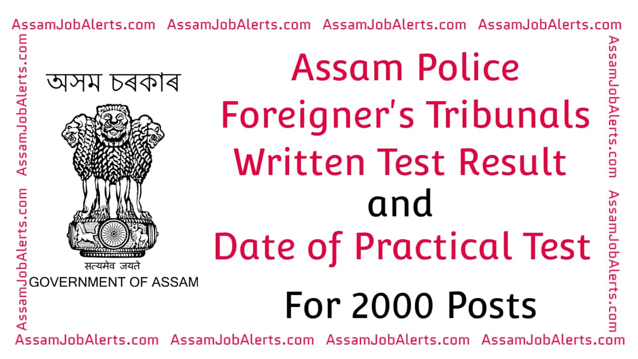 Assam Police Foreigner’s Tribunals Written Test Result – The lists of eligible candidates for Practical Test in connection with recruitment of various posts of ministerial staff for Foreigner’s Tribunals in pursuance to advertisement dated 13-06-2019 have been uploaded in SLPRB website slprbassam.in on 29-08-2019.