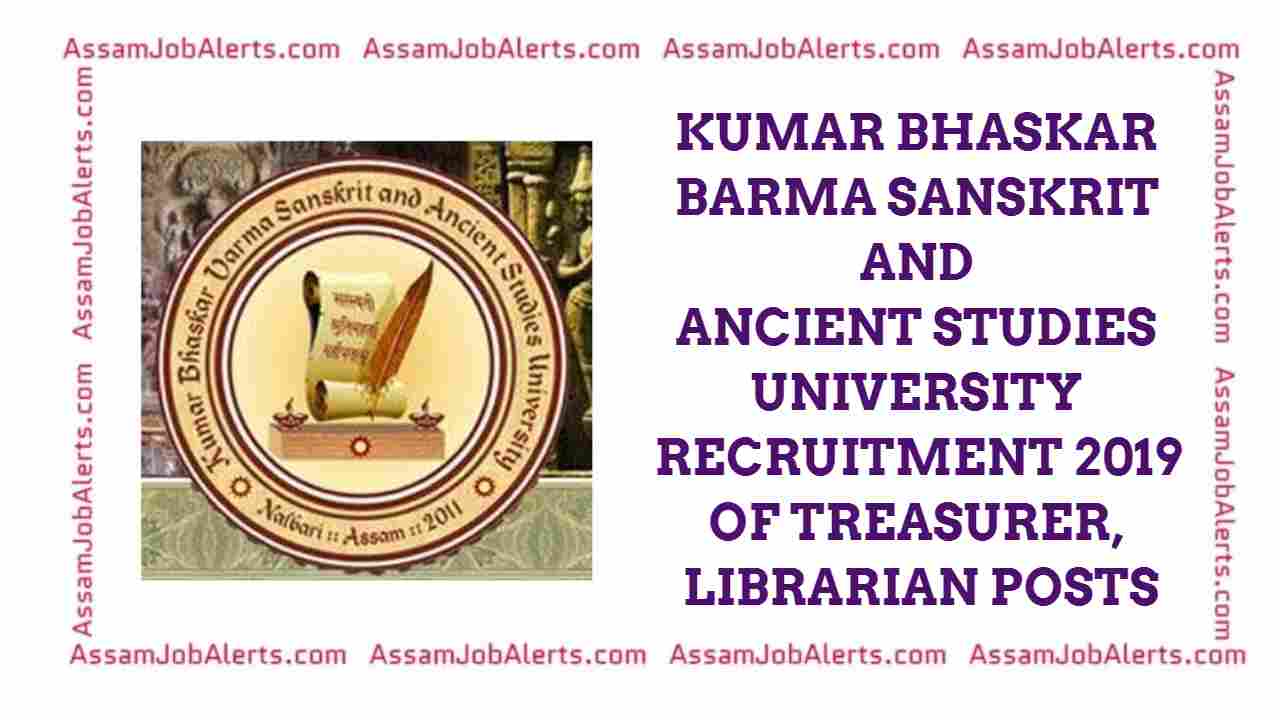• KUMAR BHASKAR BARMA SANSKRIT AND ANCIENT STUDIES UNIVERSITY RECRUITMENT 2019 OF TREASURER, LIBRARIAN POSTS KUMAR BHASKAR BARMA SANSKRIT AND ANCIENT STUDIES UNIVERSITY RECRUITMENT 2019 OF TREASURER, LIBRARIAN POSTS