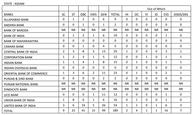 Total Number of vacancies in Assam: 189