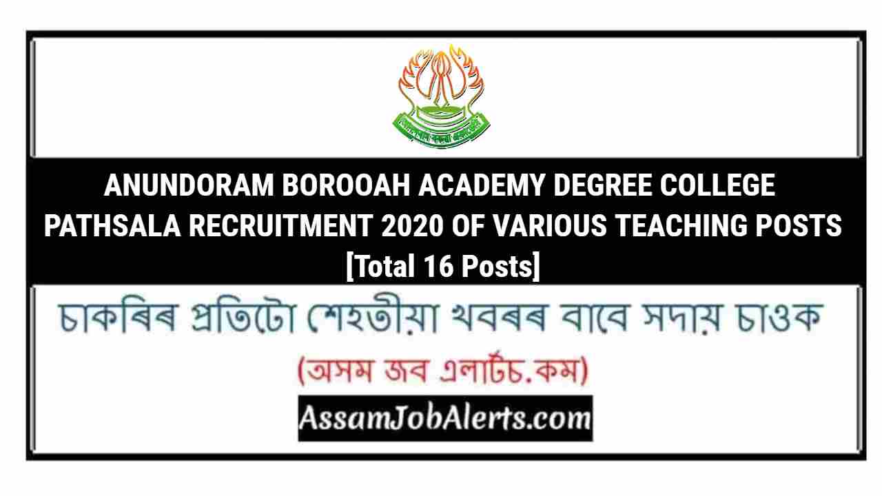 ANUNDORAM BOROOAH ACADEMY DEGREE COLLEGE PATHSALA RECRUITMENT 2020 OF VARIOUS TEACHING POSTS