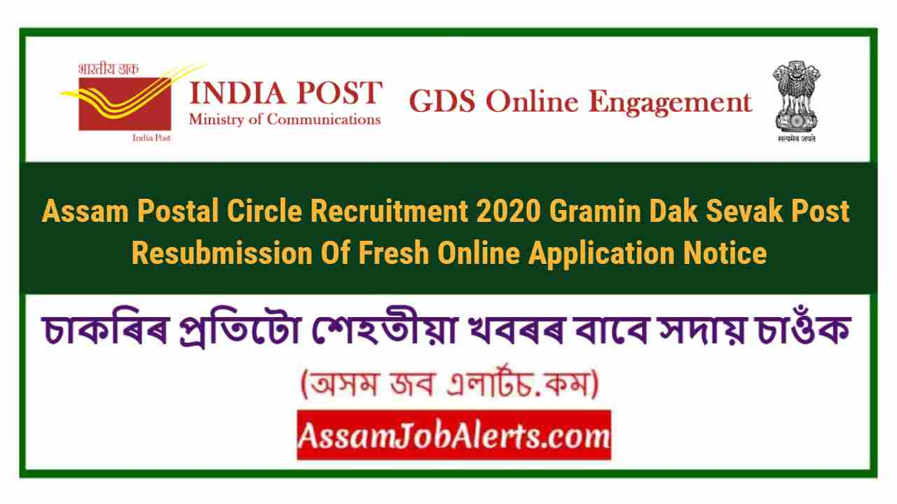 • Assam Postal Circle Recruitment 2020 Gramin Dak Sevak Post Submission Of Fresh Online Application Notice Assam Postal Circle Recruitment 2020 Gramin Dak Sevak Post Submission Of Fresh Online Application Notice