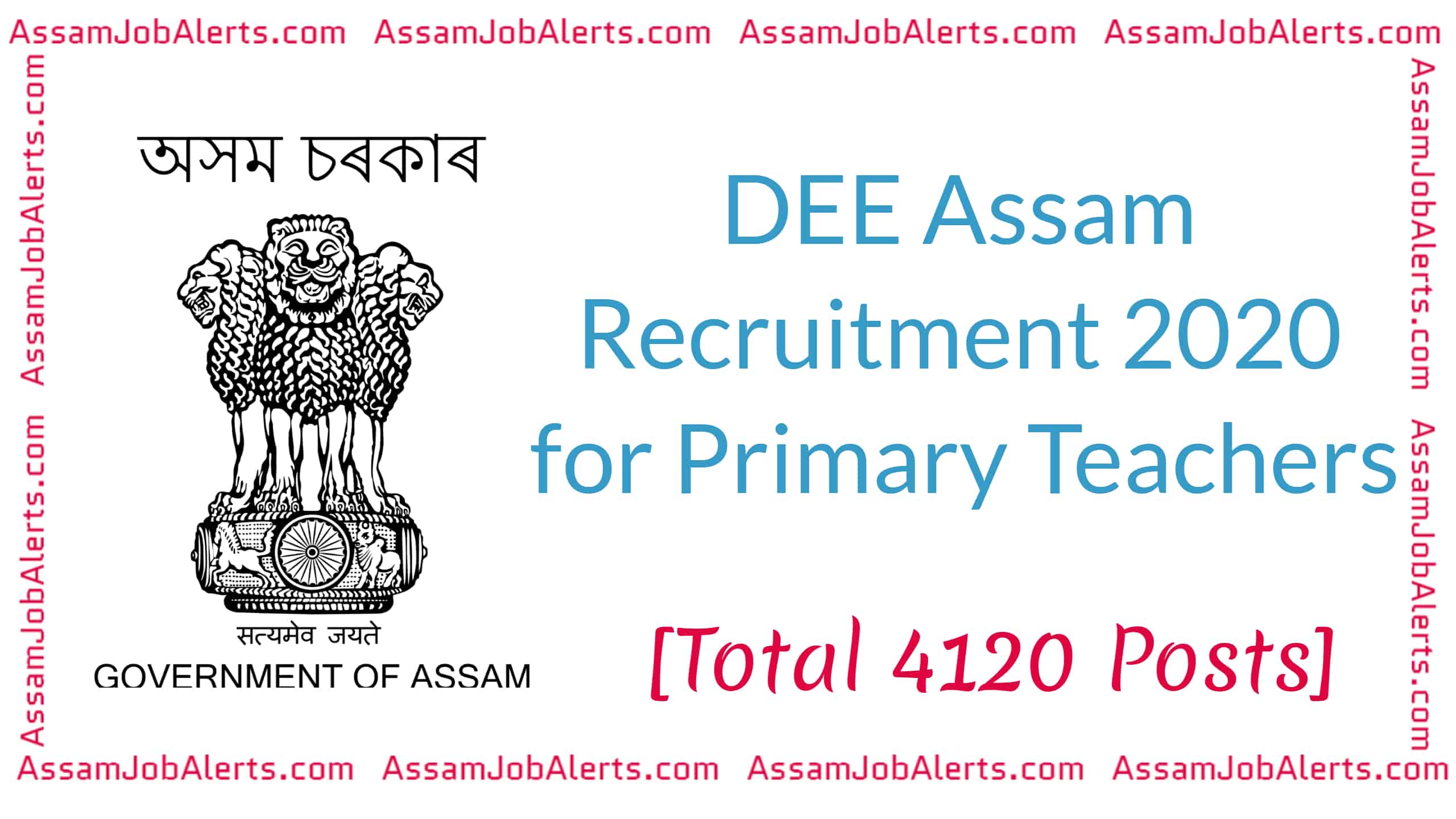DEE Assam Recruitment 2020 – In view to support, strengthen and improve the quality of Elementary Education in the state of Assam in compliance with the Right to Education Act, 2009 and subject to approval of the Post-Based Roster Register from the WPT & BC Department, Personnel Department and subject to approval of the vacant posts from Finance (SIU) Department, online applications are hereby invited from the eligible candidates, who are Citizens of India as defined in Article 5 to 8 of the Constitution of India for filling up of 4120 Nos. of regular vacant posts of teachers in Upper Primary Schools under the Directorate of Elementary Education, Assam. The category wise number of vacancies are likely to be increased or decreased. This has the approval of the Education Department, Govt. of Assam vide letter No. PMA.160/2018/15 dated 11/03/2018.