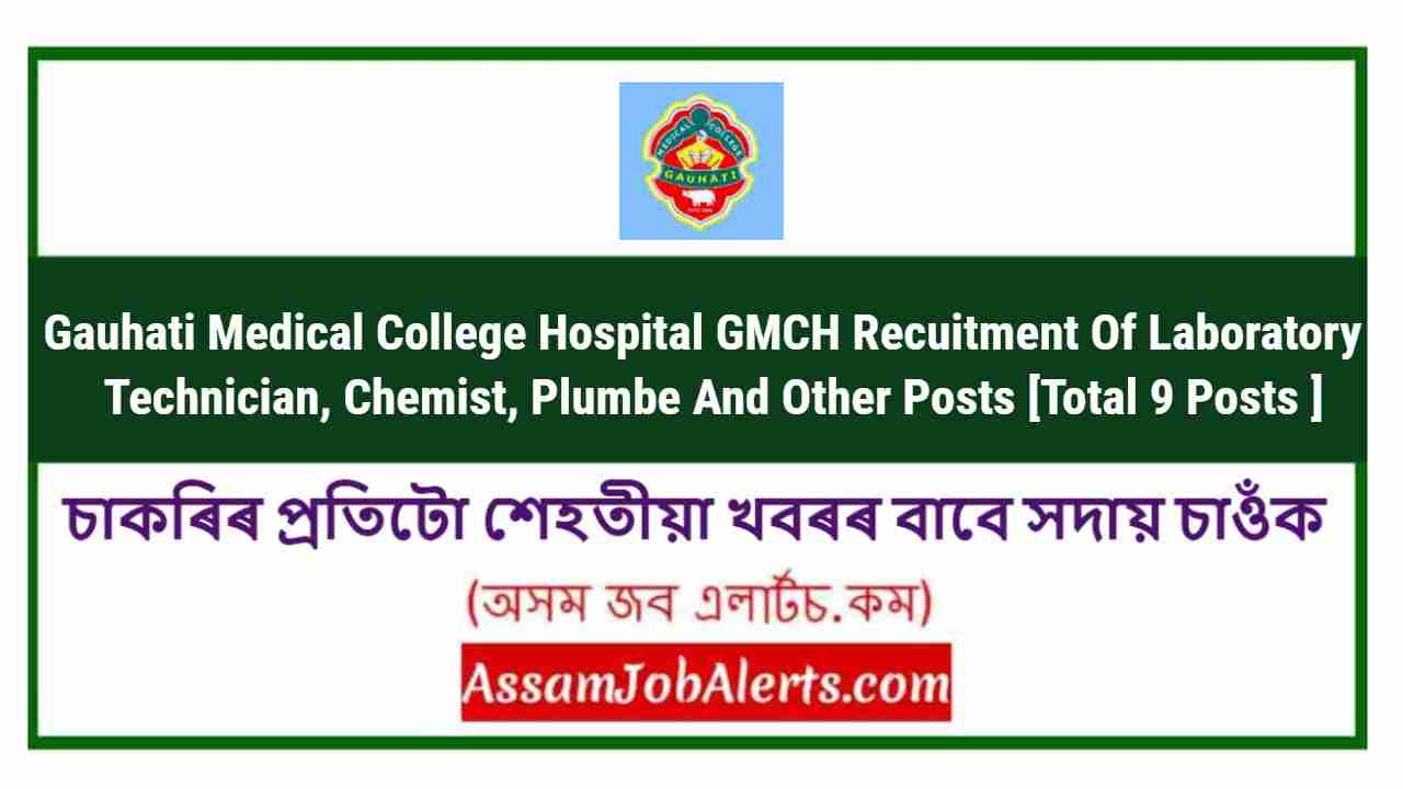 Gauhati Medical College Hospital GMCH Recuitment Of Laboratory Technician, Chemist, Plumbe And Other Posts