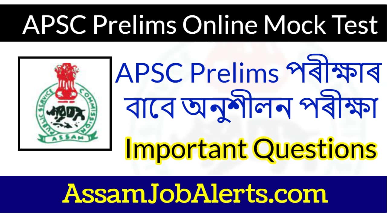 Online Mock Test For APSC Prelims Exam 2021 going to be held on in the month of August. In this online mock test we have inserted the questions those are similar to the previously held APSC Preliminary Exams. Each question have 4 options and have one correct answer. After the completion of exam you will able to find your answer as well the correct Answer. In this APSC Mock Tests we have inserted some Important Questions. Though the APSC change its syllabus for CC Prelims as well as Mains Exams still these questions are relevant to the new syllabus.