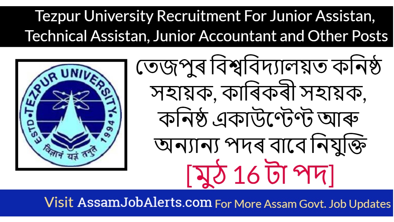 Applications through ONLINE mode only, available in Tezpur University ONLINE Recruitment Portal https://tezunt.samarth.edu.in (please type the link in your browser and press ENTER key) are invited from eligible candidates for the aforementioned posts.
